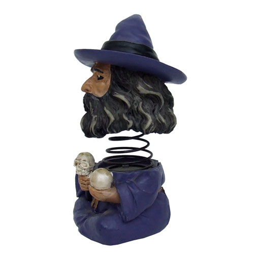 コミカルな魔法使いのボビングフィギュア☆ 首部がスプリングになってて、ユラユラと揺れるのです♪ マイカーのダッシュボードに両面テープで固定して、 ユラユラと揺れる魔法使いを眺めながら快適なドライブを!! また、ハロウィンシーズン時の装飾フィギュアとして飾ってください。