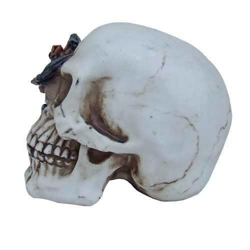 頭蓋骨の片目から、砂漠の猛毒スコーピオン(サソリ)が突き出し、 一体化したスカルヘッド「Scorpion Skull Statue」です。