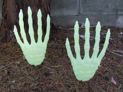 ホラーガーデニングアイテム☆ 怪しく光る大きなスカルハンドのデコレーション!! 日光や、通常の蛍光灯に数分間当てると、暗闇で緑色にぼんやり光ります。 ブラックライトに当てると、光り方は更に倍増します。 ホラー演技の小道具としてもご利用できますし、 数本買って、花壇等を怪しく囲むことができますよ!! お好みに合わせてご利用下さい。 上等な商品ではありませんが入手困難なアイテムです。