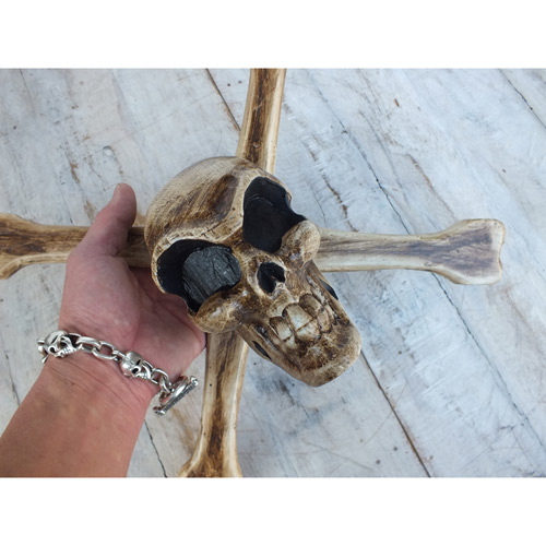 エスニックなタイの手作りアート☆ 木彫りスカルクロスです! 温か味があり、手作り感が絶妙です。 どーんっと突き出た顔がインパクト大◎