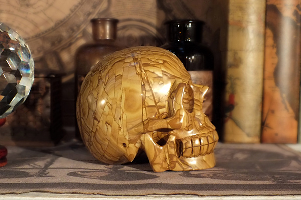 自信を持ってお勧めできるネバラン特注のパワーストーン木化石の頭蓋骨。