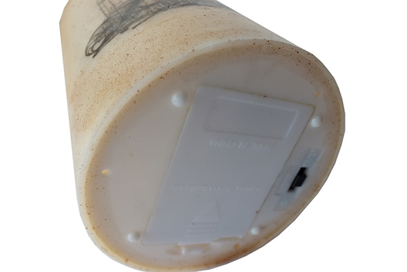 - 底面に「ON/OFF/TIMER」の切り替えスイッチがあり、 TIMER」にすると、灯りをつけた5時間後に自動的に消え、その後19時間後に自動的に灯りがつくタイマーになっています。