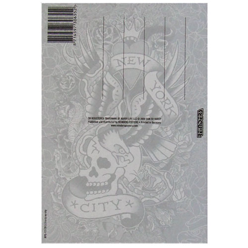超クール♪ アメリカのタトゥーアーティスト☆ 「エド・ハーディー」デザインのポストカードです。 怪しげなスカルで、クールでかっこいいです♪ ポストカードにするにはもったいない感じですね。 でもお手紙・・粋です!! インテリアとしてお部屋のアクセントとして飾っても良いですね☆