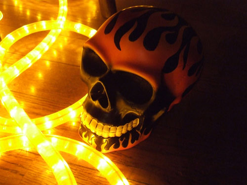 人気のファイヤーパターンデザインのスカルヘッド☆ サイズが高さ約高さ11.5cm・幅10.5cm程で、 少し小ぶりですが、カッコいいスカルヘッドです。 表面塗装は艶消し仕上がりとなっています。 コレクションアイテムとして追加して下さいね☆