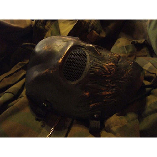 ダメージコーディングを施し、グラスファイバー(ガラス繊維) で出来た威圧感ある戦武面・スカルバトルスタイルマスク☆ グラスファイバー素材だから高強度、耐衝撃性に優れ、型崩れ無し!! 装着すると顔にフィットします。 ホラーコスチュームに合わせて活躍させて下さい。 また、ミリタリーマスク、サバイバルゲーム用マスクとしても可能です。 目の部分は金属メッシュになっていますから、BB弾から目を保護します。 お好みに合わせてご利用下さい。