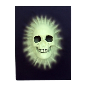 スカルファンを魅了するネバラン自慢のアイテム!! 暗闇の中で発光する3Dスカルプラキュー GLOW IN THE DARK☆ 見よ!素晴らしいディテールと躍動感のあるホラー的スカルフェイス!! コールドキャスト樹脂を巧妙に模り、鉄板からグニュと突き出した様な 見事なアートで、通常の蛍光灯に数分間当てると 暗闇で緑色に発光します☆ホラー要素十分!コアインテリアとして超お勧めです♪ 重量感もあり、見る角度でスカルの表情も変ります。 突然照明を落とし、緑色に浮かぶスカルを堪能して下さい☆ どの角度で見ますか?ゲットしたらカッコいい角度から眺めてください。 恐怖感を与える為に必要な最強アイテムになります。 間接照明等を利用し、さらにコアでカッコいい姿にさせて下さいね☆