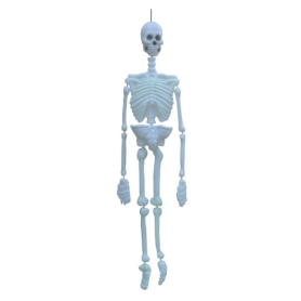 ホラーなディスプレイに欠かせないプラスチック素材の ハンキングスケルトングロー(蓄光)タイプです。 通常の日光、蛍光灯に数分間当てると、暗闇で部分的に緑色に光ります。 吊り下げたり、置いたりしてディスプレイして下さい。 本体約全長90cm程あり、各関節は可動式でお好みのポーズが楽しめます。 ハロウィンシーズンにも活躍しますね☆