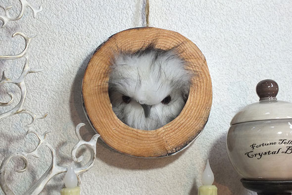切り株の中からちょこんと顔を出す可愛いフクロウ☆