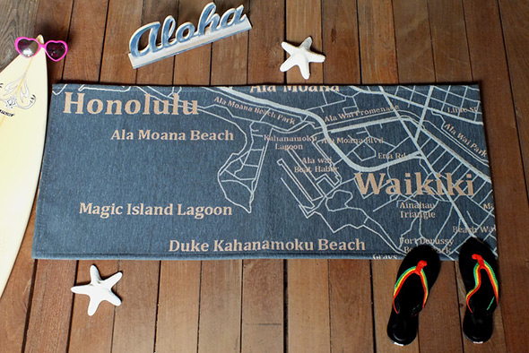 ハワイ「Honolulu」マップ柄のお洒落なインテリアフロアロングマット☆