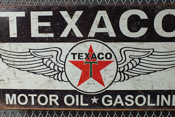 テキサコモーターオイルのウィングデザインがカッコいいブリキ看板☆