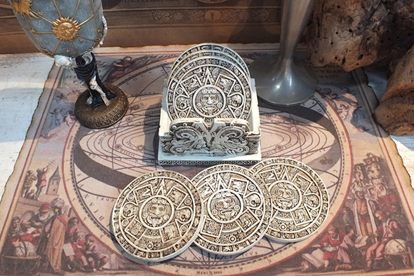 マヤ文明 アステカ(暦石)カレンダー コースターセット6P Aztec Bone Resin Calendar Coaster Set