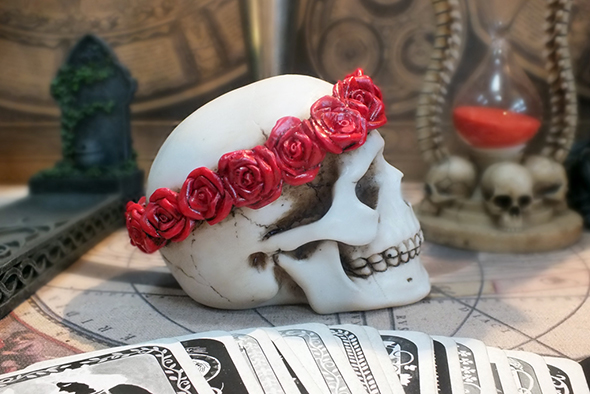 真っ赤な薔薇の花かんむりを被った可愛いフラワースカルヘッド♪