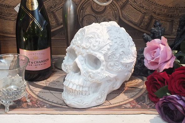 ロココスカル ホワイトフラワー スカルヘッド Rococo White Floral Skull Statue