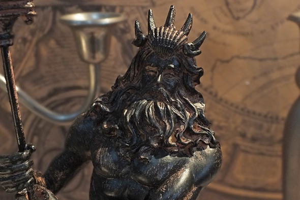 三叉の戟 (ほこ) を持ち、海洋を思いのままに制するとされた大神。