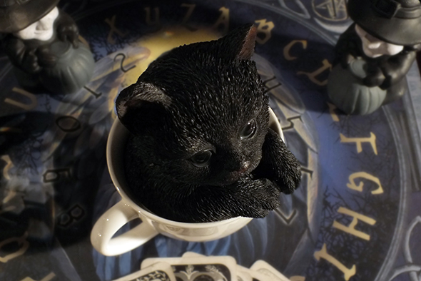 ティーカップに入った可愛すぎるブラックキャットの子猫の置物!